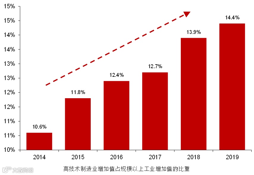 图:国内高端制造业的经济体量占比持续提升