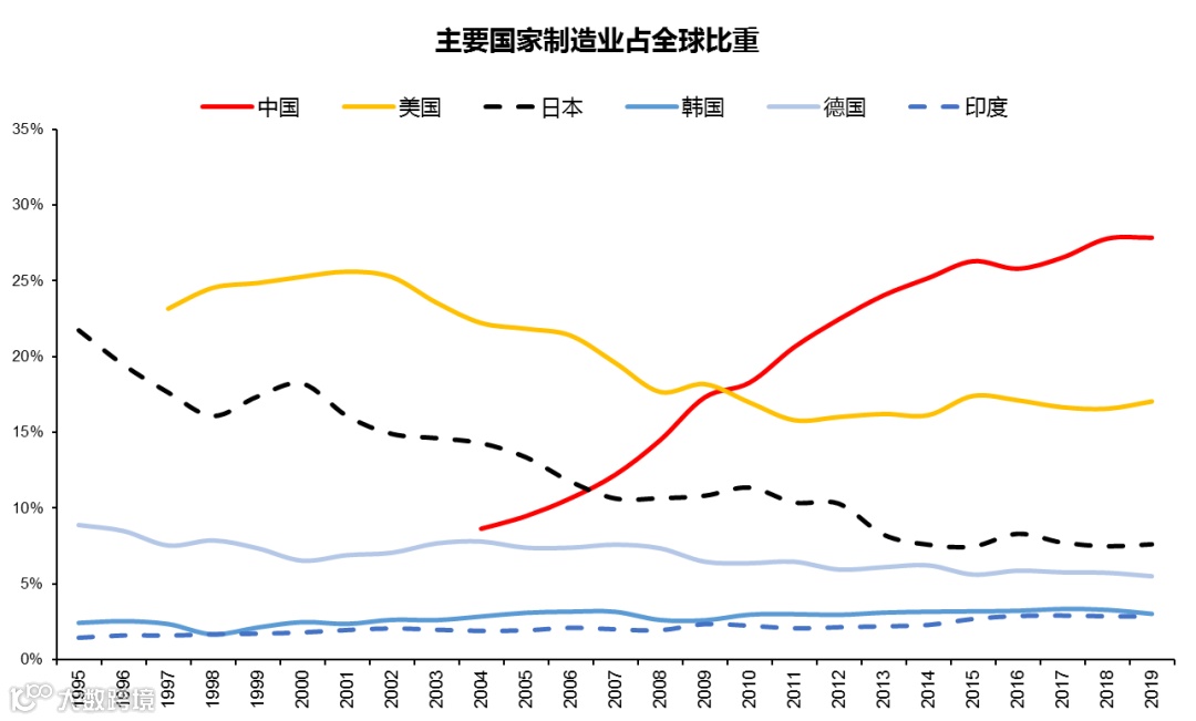 图:中国制造业增加值规模的全球占比持续上升