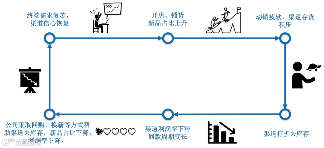 2)下游零售管理能力显著提升:在Zara崛起的年代,IT系统较为落后,对于终端动销的跟踪反馈主要通过门店员工的人力搜集而完成。而如今IT系统的进步,使得服装品牌能够非常方便的掌握终端的实时动销情况,也能够实现不同类型渠道间的库存共享。信息技术的进步带来服装品牌零售管理能力的加强,同样使得服装品牌的存货风险出现系统性的下降。