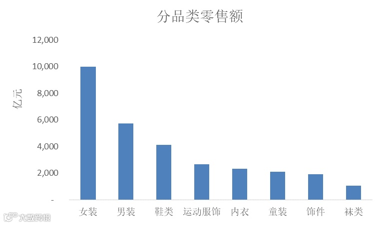 但是如果我们把范围扩大到整个纺织服装行业,会发现一个很有意思的现象。剔除运动服饰板块以外,绝大部分的纺织服装行业上市公司在资本市场的表现乏善可陈。而运动服饰,在服装行业整体规模中的占比并不大。从零售规模看,运动品牌销售规模远小于女装品牌和男装品牌,仅与内衣相当。为什么服装行业这么大,只有运动品牌中诞生了这么多千亿市值的公司?如果国产运动品牌能够凭借国潮崛起,那么其他国产服装品牌是否有机会?