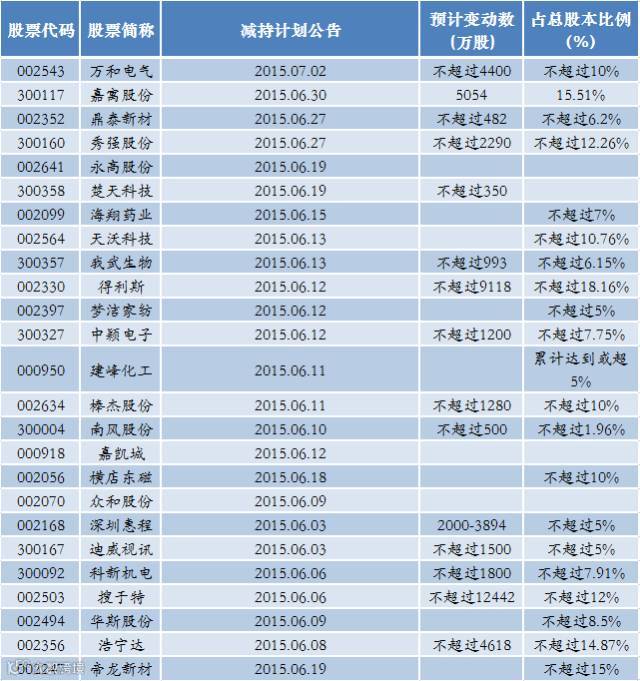 其次,还有一类需要格外注意的公司是:它们在进入2015年下半年且减持禁令还未发布前就已经披露了公司股东的减持计划。
