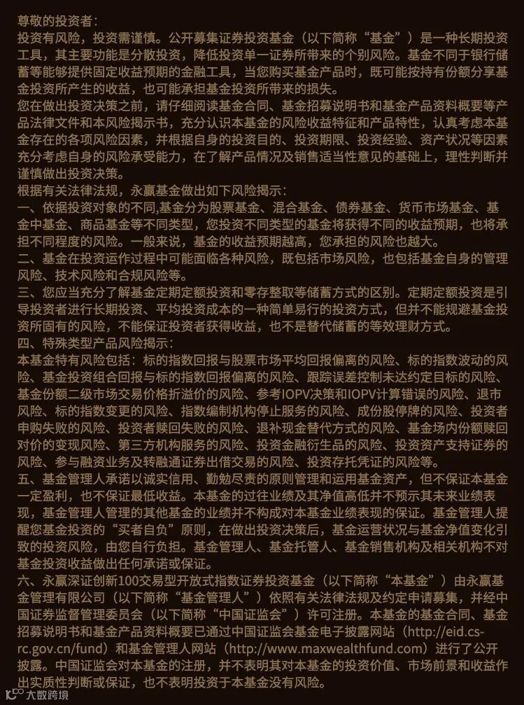 关于永赢深创100ETF,你想知道的这里都有