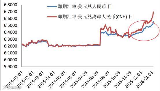 1月4日,离岸市场人民币汇率从前一日的6.5673,一举突破6.6大关,当天收在6.6272,人民币全天贬值600个基点;