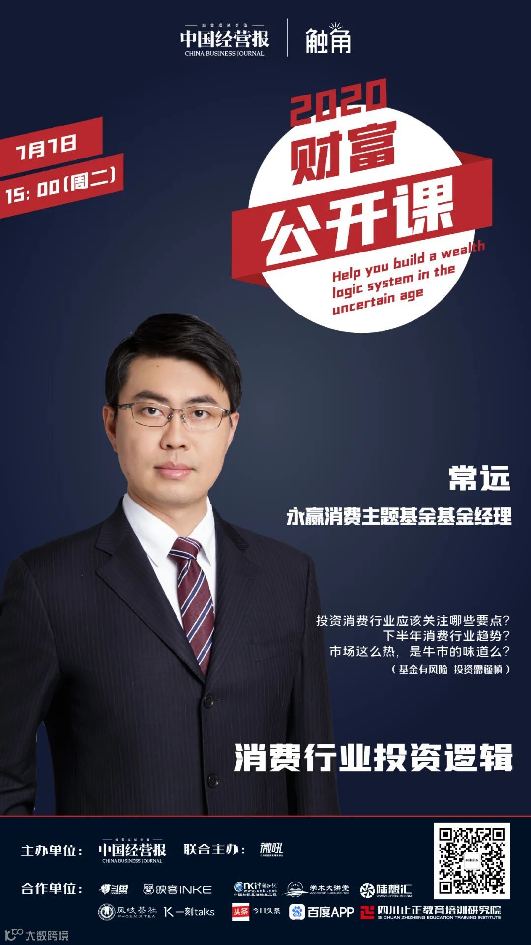 今天下午三点,永赢消费主题基金经理常远先生做客《中国经营报》财富公开课,看好消费行业的小伙伴可以点击文末“阅读原文”直接收听哦!