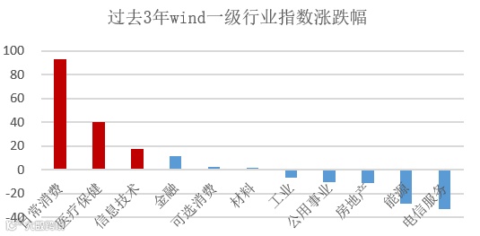 近3年以来,以日常消费、医疗保健、信息技术为代表的成长板块表现突出,一骑绝尘。