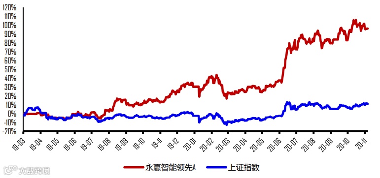 永赢智能领先主要投资于智能领先主题相关上市公司股票,在控制风险的前提下,力争基金资产的长期稳定增值。截止今年11月末,该基金A类份额成立以来涨幅96.32%,同期业绩比较基准仅为23.80%,同期上证综指仅上涨11.46%。①