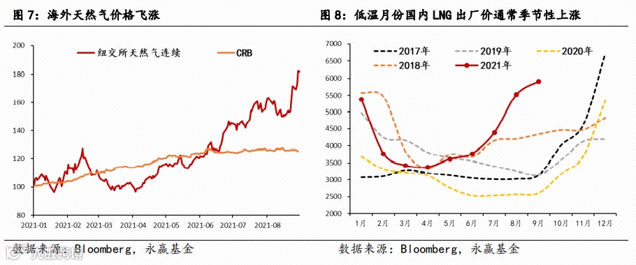 一方面今年新的高温数据屡破纪录,另一事实却是冬季的超级寒潮事件越来越多(气候周期复合作用的结果)。随着消费旺季即将开启,各地买家都在积极筹措资源,力求为冬季采暖需求做好储备,造成各地燃料资源价格飞涨:欧洲天然气价格较去年低点几乎翻了十倍;美国天然气期货年内涨幅已超五成;根据季节性特征,国内的煤炭、LNG保供都有不小压力,当前也已明显出现高于往年的超涨迹象。