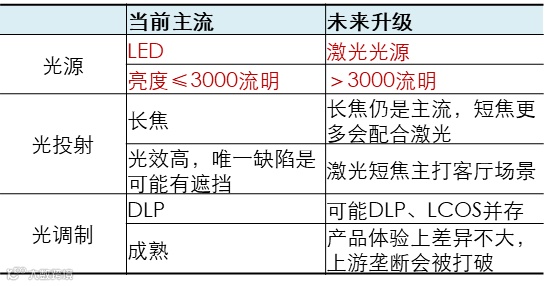 目前LED光源投影技术成熟,未来激光光源可能会打开下一个产品升级的技术代际