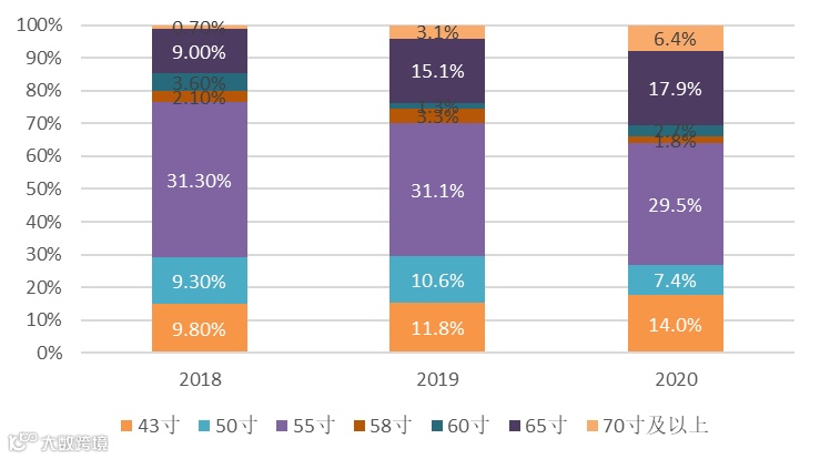 狭义电视消费范畴内,大尺寸占比提升(65寸以上),绝对小尺寸(43寸以下)占比也在提升,对于大尺寸而言,智能微投产品具有绝对的性价比优势,而绝对小尺寸预计更多对应非客厅场景(如卧室、书房、租房),有便携性需求,也有投影的渗透空间。