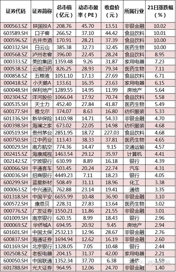 说完基金来说个股,证券时报旗下“莲花财经”公众号筛选了以下股票
