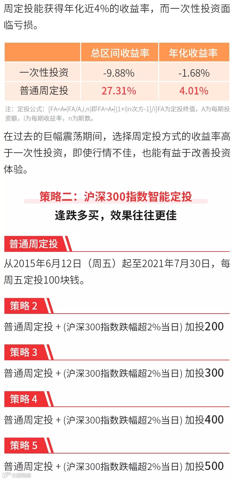 风险提示:基金投资需谨慎。投资人应当充分了解基金定期定额投资和零存整取等储蓄方式的区别。定期定额投资是引导投资人进行长期投资、平均投资成本的一种简单易行的投资方式。但是定期定额投资并不能规避基金投资所固有的风险,不能保证投资人获得收益,也不是替代储蓄的等效理财方式。