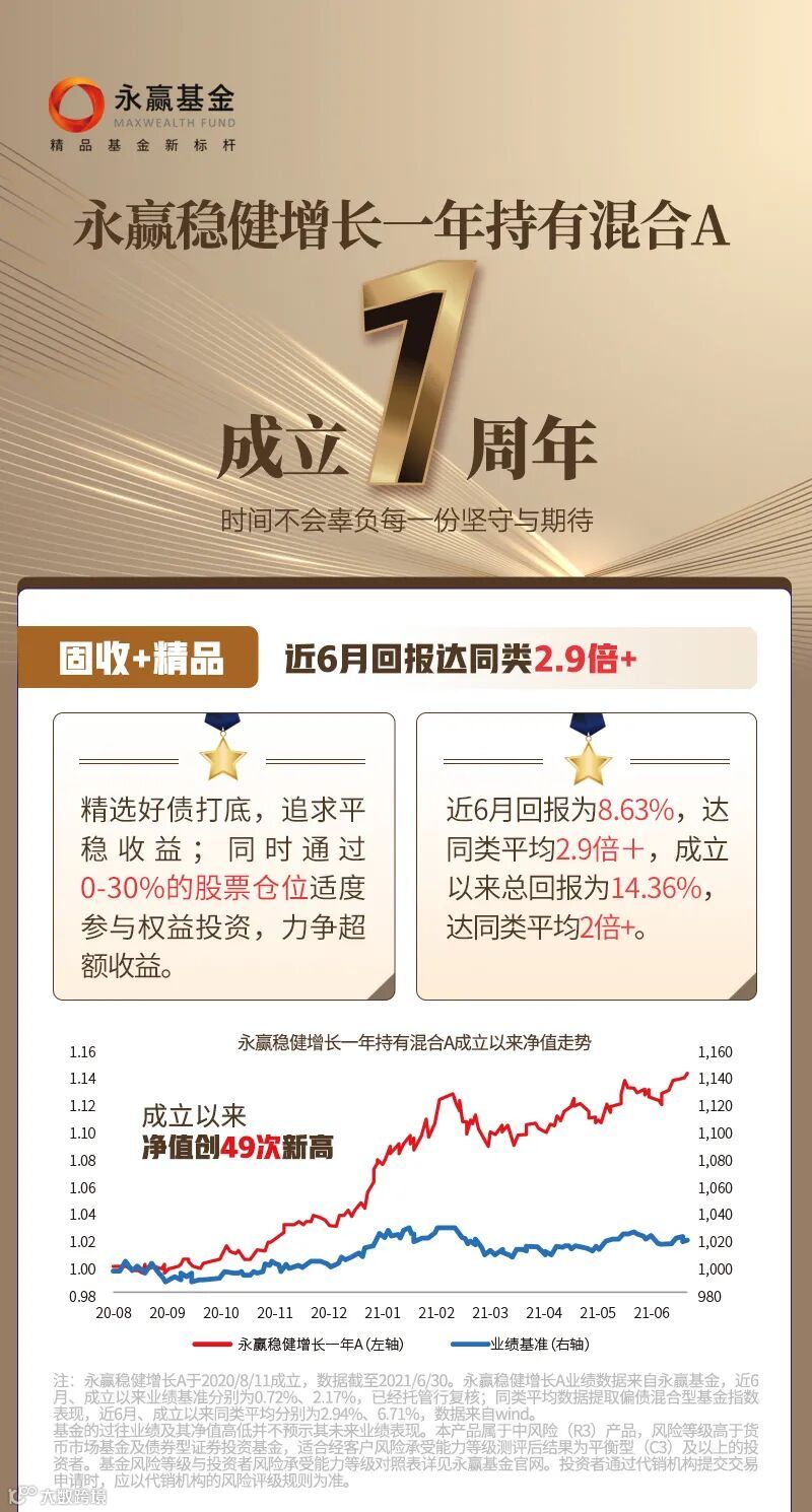 永赢稳健增长一年A一周岁啦,