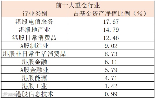 永赢港股通品质生活慧选股票占基金总资产的比例为81.19%,通过港股通投资港股占基金资产净值比例为66.87%,重仓港股电信服务、港股地产业以及港股日常消费品等。