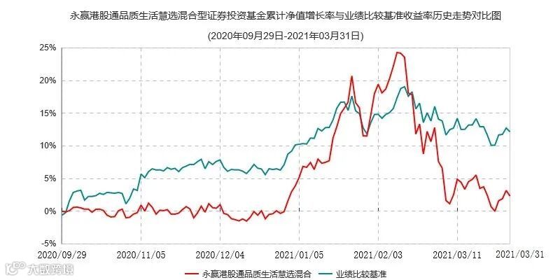 截至2021Q1,永赢港股通品质生活慧选基金份额净值为1.0233元,规模合计为20.79亿元。注1