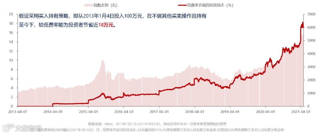 为目前A股市场最低费率水平ETF之一。假设与常见ETF 0.6%费率水平相比(0.5%+0.1%),从2013年至今的回测中,永赢深创ETF由于低费率,可节省18%的成本。作为一只新宽基产品,永赢深创ETF力争成为投资者高透明、高效率、低费率的投资工具。