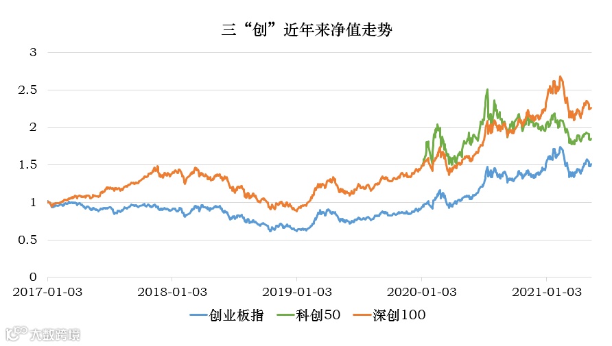 虽然三个指数名字里都有一个“创”字,但在对创新的定位上,各有不同。