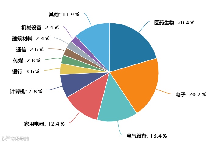 从行业分布上看,创业板指中医药生物、电气设备占比较高,二者合计权重高达55.6%。