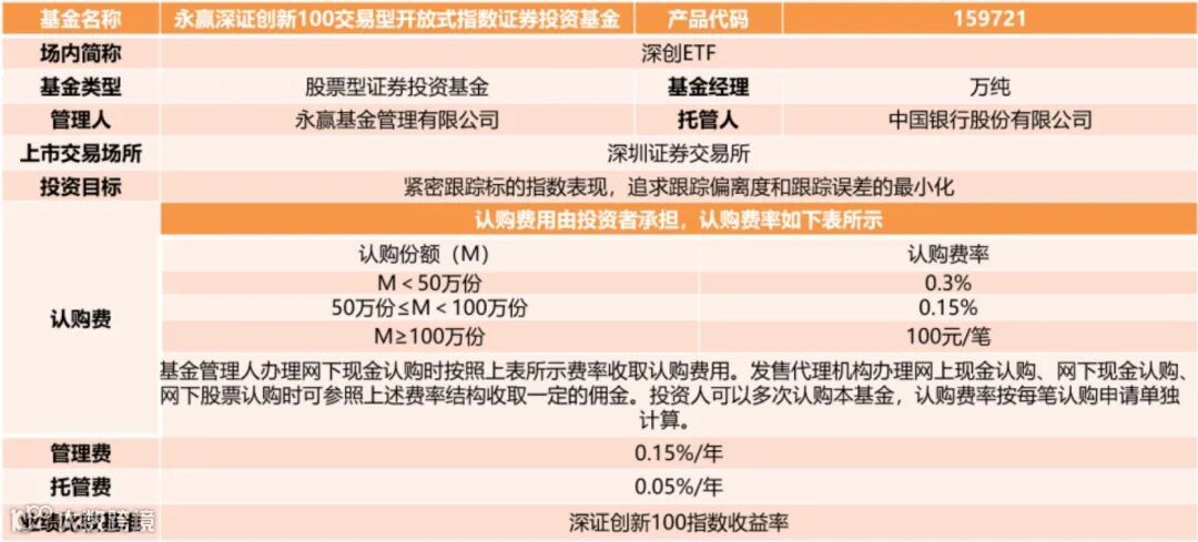 永赢深创ETF为市场首批跟踪深创100指数的ETF,具备市场稀缺性。该ETF场内简称深创ETF,认购代码为159721。于2021年6月1日-11日发行,投资者可通过网上现金认购、网下现金认购和网下股票认购3种方式参与认购。