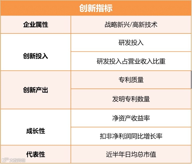 成分股筛选要“过三关、斩五将”。先从流动性、杠杆率及商誉占比三维度做负向剔除;再从行业、研发投入、产出、成长及代表性五方面做正向选择,最终优选创新能力强的100家企业构成指数样本。