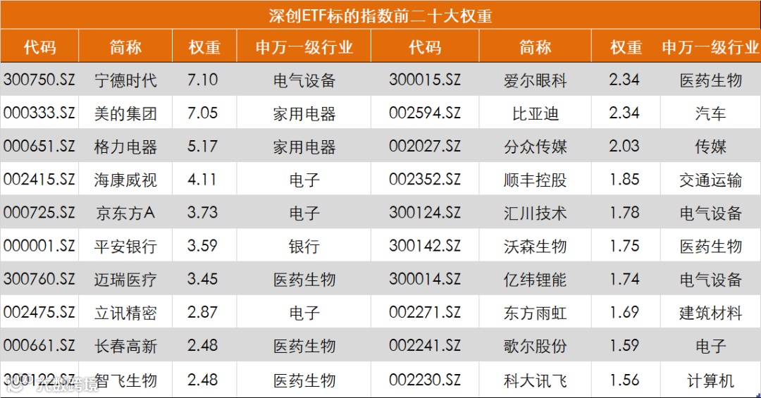 注:以上个股为深创100指数前二十大权重成分股,仅作为举例说明,不代表基金管理人任何投资建议,持仓信息或交易方向。
