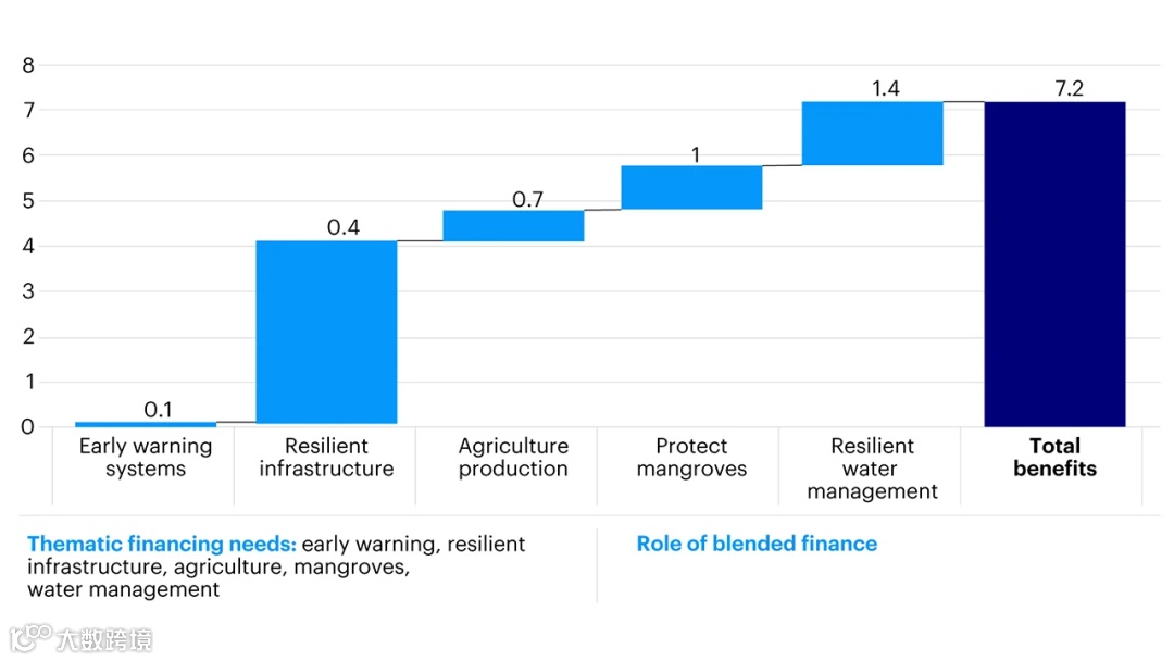融资缺口:巨大的融资缺口需要通过混合融资工具来解决,其中,公共融资可以为私募部门的适应投资提供更好的风险回报。