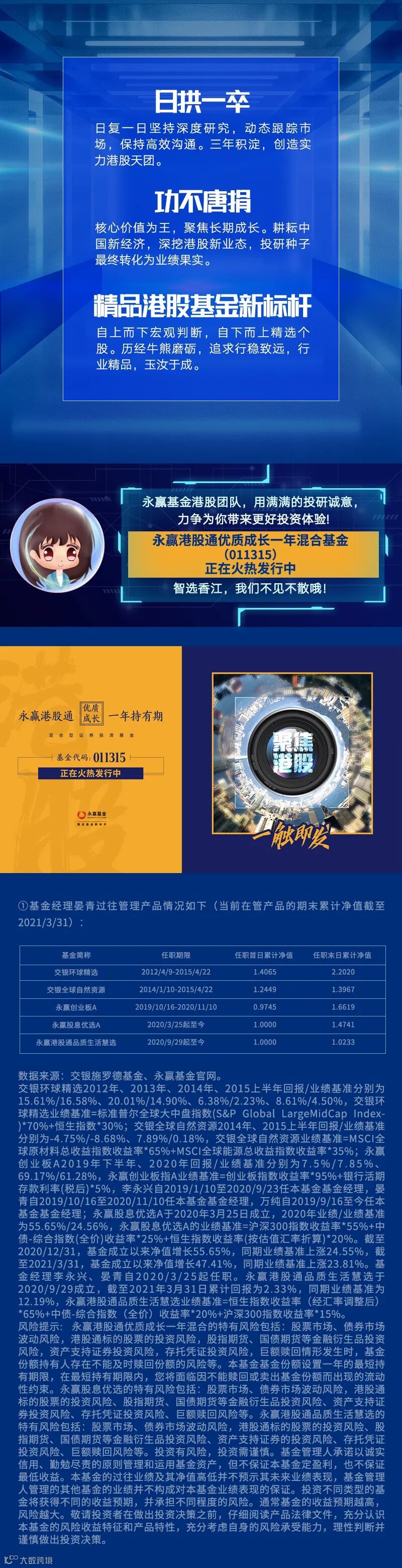 导读:永赢港股通优质成长一年混合基金本周三结束募集~