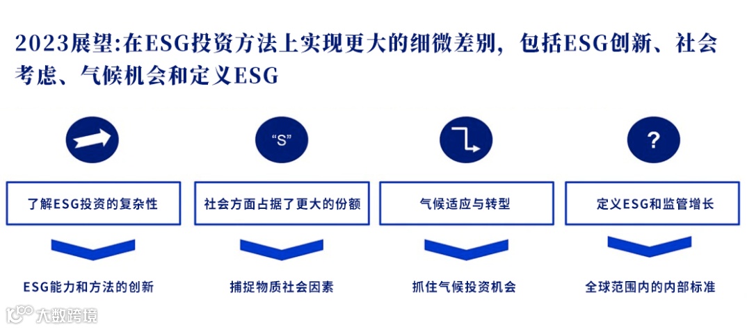 在2022年,企业花了大量时间实施欧盟SFDR,整个市场出现了不同的方法。在2023年,我们预计将看到包括可持续投资等项目在内的标准进一步整合。这也将是关于主要不利影响指标的第一轮全面报告,很可能被视为在年内进一步完善后的第一次发布。