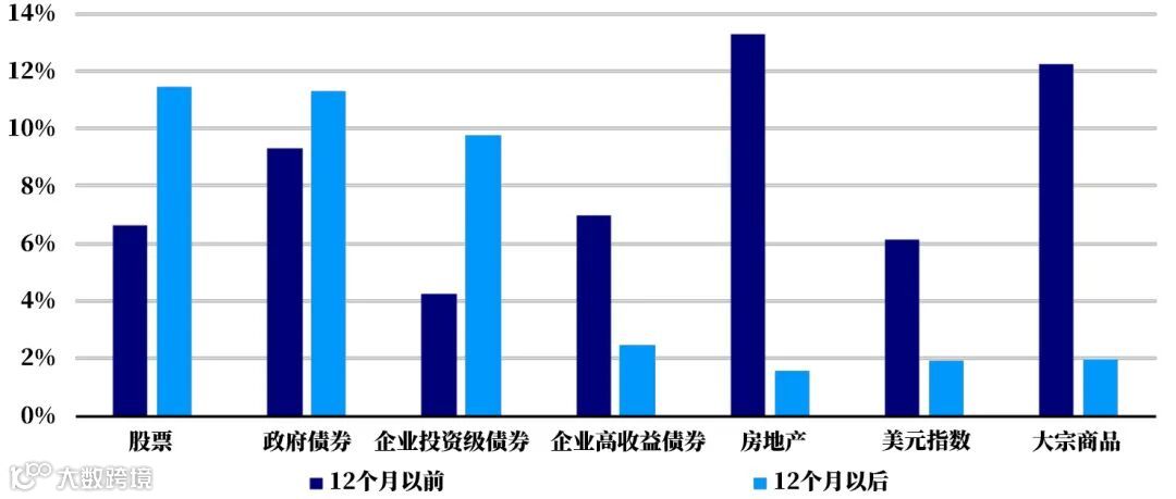 在今年年初前后出现了大幅下跌之后(见图2),现金利率似乎已经停止上升,其他资产的收益率表现不一。尽管政府债券收益率更大的上升幅度表明利差进一步收窄,银行贷款当前收益率跌幅最大,但是从高位回落,而信贷收益率从近期的部分下跌中逆转。这种明显的乐观情绪也反映在股票和房地产投资信托基金收益率的轻微下降上。我们将进一步分析这种乐观情绪的合理性。