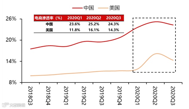 疫情期间电商渗透率大幅上升