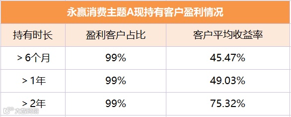 永赢消费主题,持有6个月以上的现持有客户99%都盈利。盈利概率高只是及格线,收益好才算得上优秀!持有该只基金2年以上的现持有客户,他们平均收益率为75.32%!②