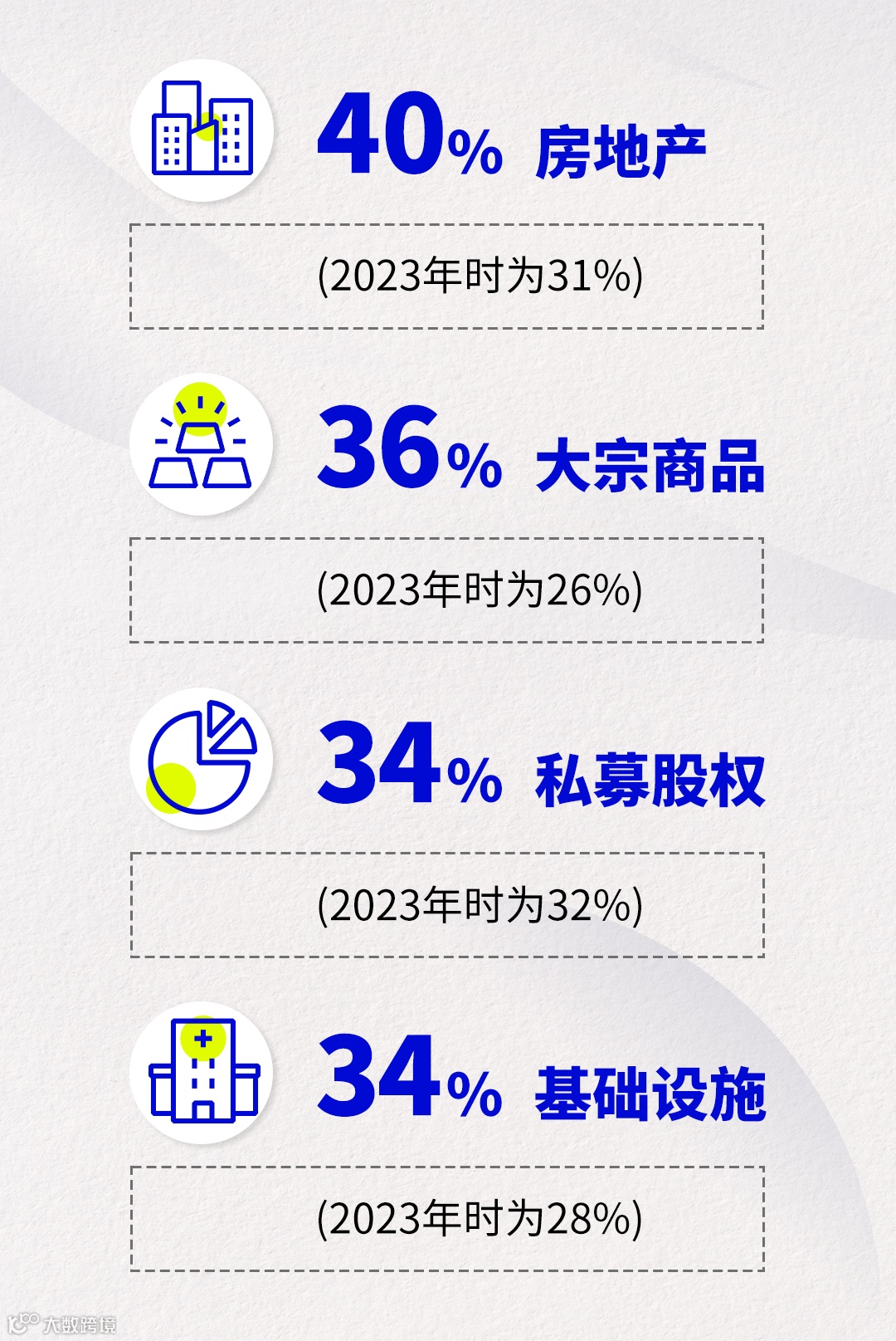 机构投资者定义为养老基金(包括界定利益及界定供款)、主权财富基金、保险公司、捐赠基金和基金会。中介投资者定义为经散户投资者全权委托管理一篮子资产的基金经理或投资组合管理人,包括私人银行中受全权委托的投资团队或基金选择人、财务咨询顾问以及受全权委托提供中介服务的基金经理。