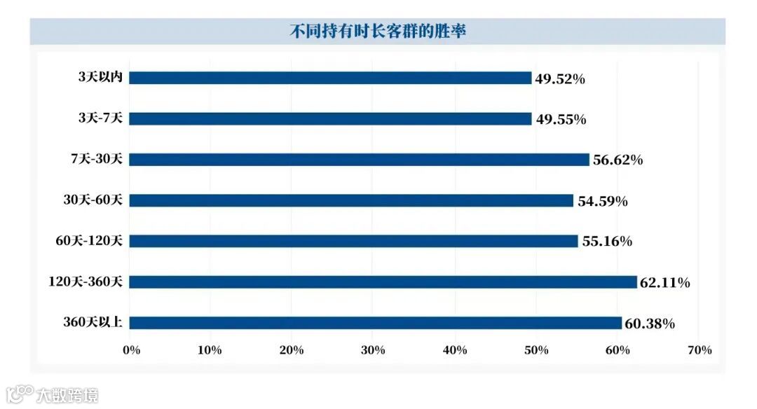 超60%的客户平均持有时长在60天以内,其中,更有近32%的客户平均持有时长不超过1周。