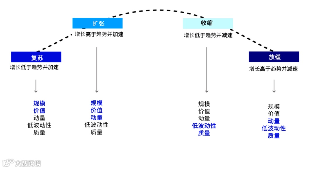 ✓景顺动态多因子(DMF)策略的一个重要理念认为,特定的风险驱动因素会在经济周期的不同阶段得到不同的回报。