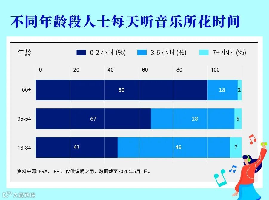 数字音乐平台消费者群体更加年轻化。从年龄上看,16至34岁的人群每天聆听音乐所花时间更多,且90后、00后们更喜欢订阅音乐,2016至2018年,流媒收入增长呈指数式上增。