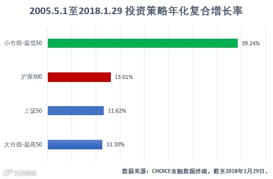 市值较小的公司也受益于小数定律。由于公司的收入相对较小,每笔销售对财务报表的影响要比在一家较大的公司大。这可能带来多年的两位数的收入增长率,并最终随着这些公司的成熟而实现利润增长。 -