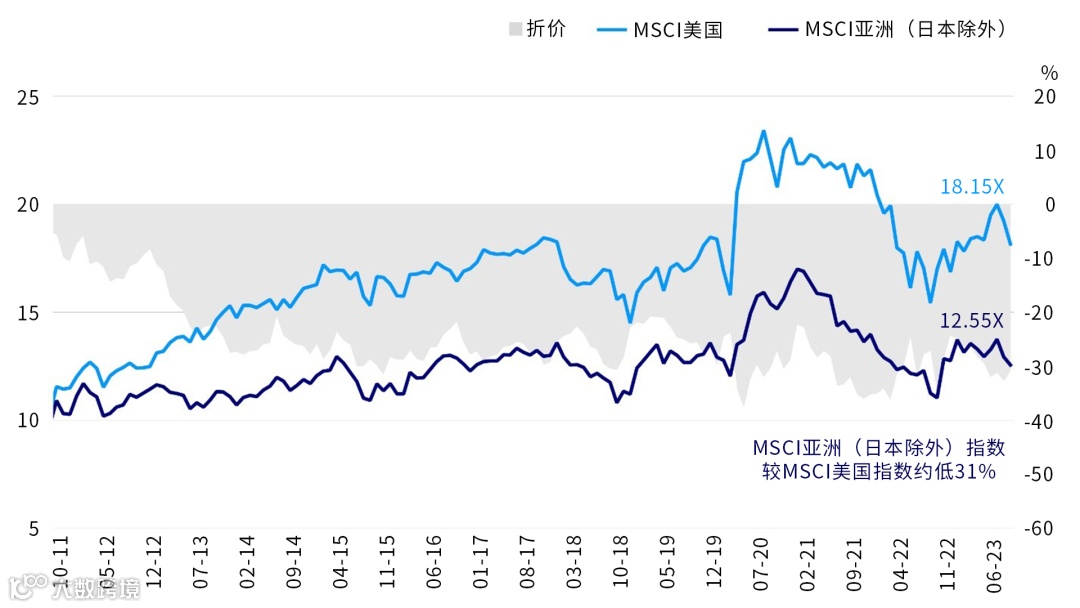 从估值角度来看,MSCI亚洲(日本除外)指数较MSCI美国指数约低31%。3(Factset,2023年9月)与其他发达市场相比,目前亚洲市场的估值具有吸引力。此外,亚洲正在经历良性通胀,为企业和消费创造了更稳定的环境。这有利于亚洲的持续增长和投资机遇。