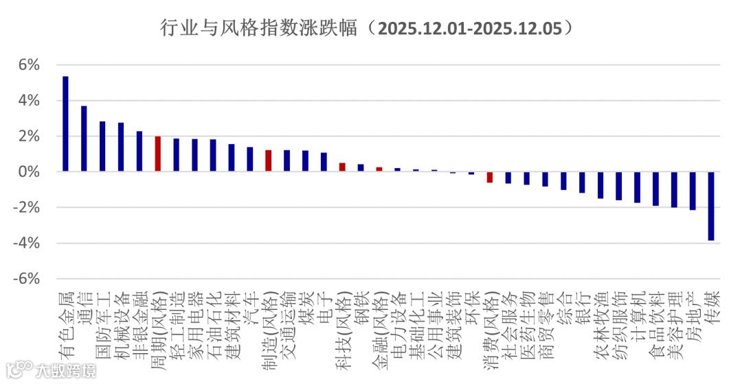 未来两周市场还会进入宏观政策的密集发布期,包括我国的中央政治局会议和中央经济工作会议会陆续召开,美联储宣布美国的利率基准,以及日本央行决定是否加息。我们认为市场会处于整体偏暖的环境中,面对十五五的开局之年,我国的政策制定仍然会引导更积极的预期,财政有望进一步发力,对于投资和消费端给予更多的支持,货币政策也可能会有配合。