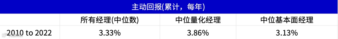 图2 -中位量化基金经理过去每年的表现