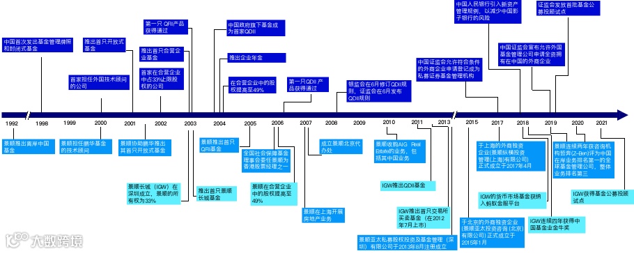 ●2003年,景顺联合长城证券等中国企业发起设立景顺长城基金管理有限公司(以下简称“景顺长城”“IGW”),在中国首开中美合资建立基金管理公司的先河。