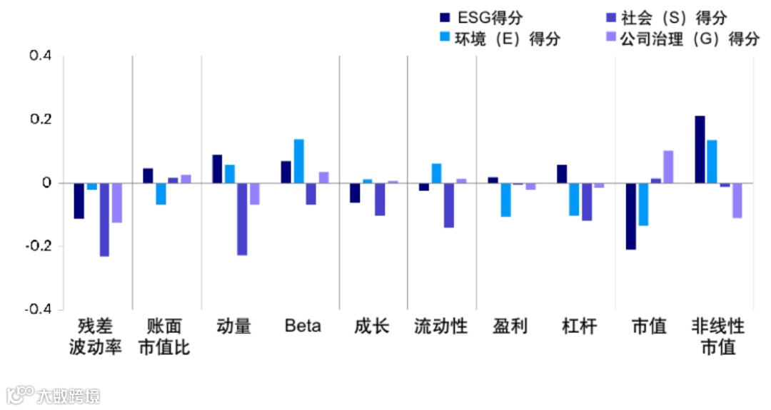 而以A股市场的量化策略研究为例,为了应对ESG数据覆盖度低、碎片化、非结构化和行业特征明显等特点,景顺长城团队借助大数据技术及自然语言处理(NLP)方法生成高质量底层数据,研发本土化的ESG评级体系,深挖ESG中的超额收益。研究发现,在中国市场中ESG因子具有较强的选股区分度和超额收益潜力;同时,ESG与传统风格因子具有较低的相关度,通过量化框架的调整可以得到更加纯粹的增量信息(见图5)。