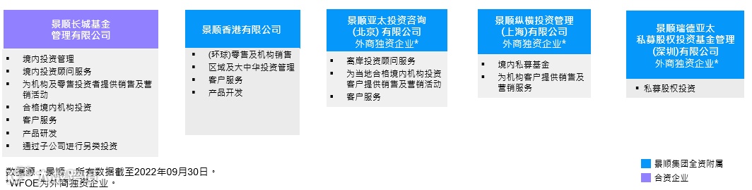 正是基于对中国数十年发展奇迹的亲身经历,景顺始终对中国市场的未来保有坚定信心。截至2022年11月底,景顺管理的中国相关资产规模达到1160亿美元,人员规模持续扩大,开展在岸和离岸资产管理业务,覆盖公募、私募等投资产品及服务(见图2)。