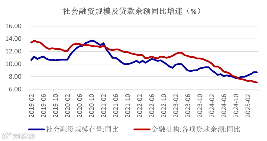 上周中国人民银行公布了5月份的金融数据。从增速口径看,我国社会融资规模存量增速8.7%,与上期持平;贷款余额同比增速为7.1%,较前期下降0.1个百分点。从结构数据看,5月份新增社会融资规模2.23万亿,同比多增2271亿,其中政府债券新增1.46万亿,同比多增2367亿;5月份新增人民币贷款6200亿,同比少增3300亿,其中企业中长期贷款新增3300亿,同比少增1700亿。从总量数据和结构数据分析,5月份社融规模增长依赖政府债券,财政发力对冲了居民和企业需求的回落;信贷需求仍然较弱,居民和企业的信贷需求均呈现同比少增,企业中长期贷款同比下降,反应企业端投资意愿不强。