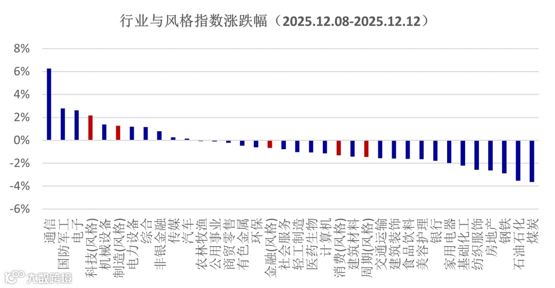 经过上周的市场波动,投资者对于国内宏观政策的预期调整已经完成,进一步验证需要等待地方两会和全国两会;美联储宣布了降息,但表态偏鹰,叠加未来美国通胀和就业数据仍有不确定性,导致美元进一步降息的不确定性增加。此外受到美国科技股业绩和预期波动的影响,相关产业链呈现出了一定的压力,预计对国内相关板块也会形成映射。