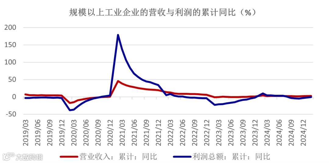 上周统计局公布的2025年2月的工业企业业绩情况,整体业绩符合预期。从数据分析,规模以上工业企业营业收入1-2月同比增长2.8%,较2024年的2.1%进一步回升;工业企业的利润总额同比增长为-0.3%,较2024年的-3.3%收窄了3个百分点。生产强于需求,也是目前国内面临的主要困境,这导致价格承压,企业利润表现弱于收入。
