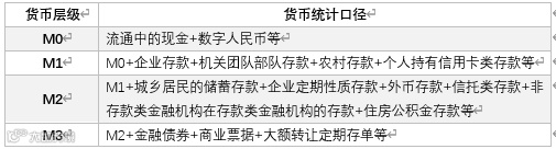 我们知道,为监测货币供给量、提高货币政策效果,货币当局通常根据流动性不同将货币分层。在咱们国家,中国人民银行(央行)将货币分为M0、M1、M2和M3(M3是出于金融创新不断出现的现状考虑而设,至今尚未编制),流动性依次下降、统计范围依次上升: