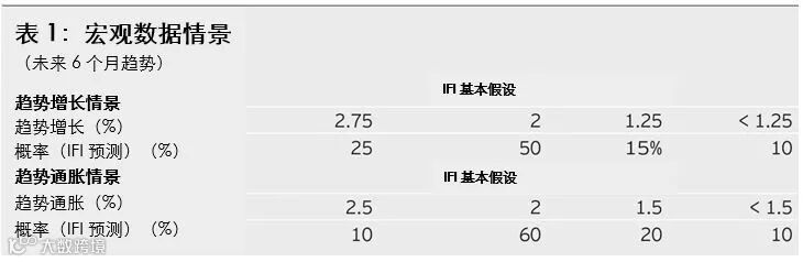 在表1中,我们的基本假设是:未来六个月的趋势增长为2%,趋势通胀为2%。