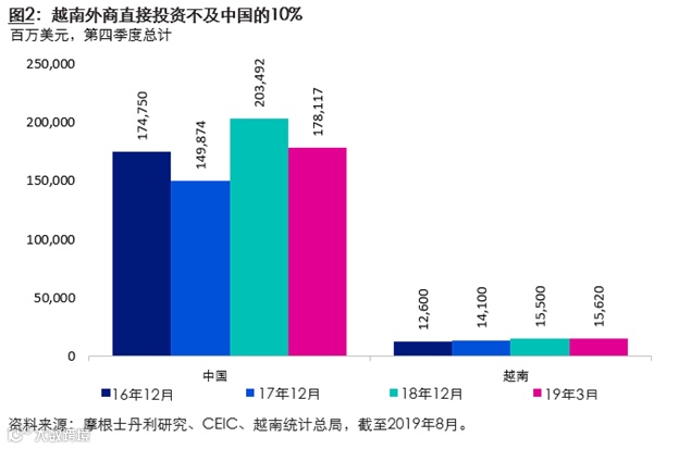 利好的货币和财政政策将推动2020年增长靠稳。贸易紧张局势将加速低附加值生产活动的转移,但不大可能影响中国在吸引外商直接投资方面的领先地位。