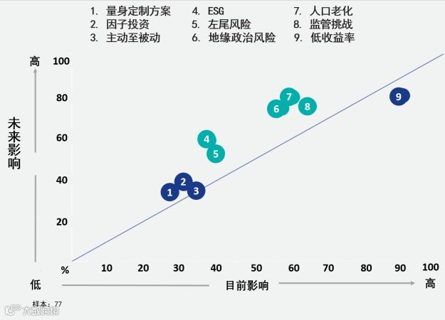 投资者继续专注于适应低收益率的环境。然而,图2也反映投资者期望在这方面能够取得进展,并期望低收益率环境的影响稍为减弱。这将释放出部分空间以应对一系列影响力与日俱增的新挑战,尤其是人口老龄化、监管变动和地缘政治风险。