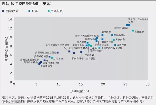 景顺的2019年长期资本市场假设(美元)指出,风险资产持仓对实现长期目标而言至关重要,另类投资持仓也有助于分散投资和减轻风险,其中包括市场中性投资组合及其他关联度较低的资产类别。