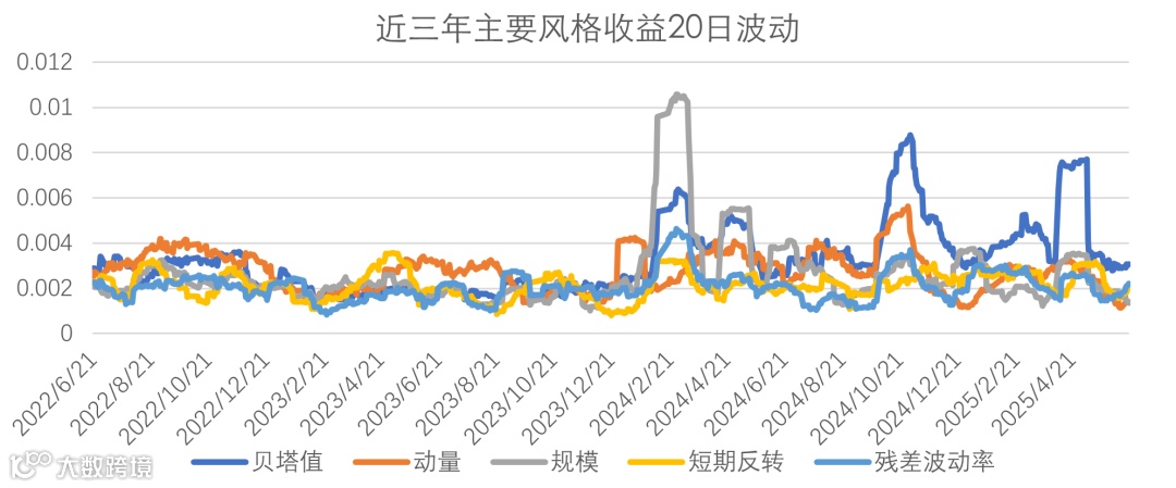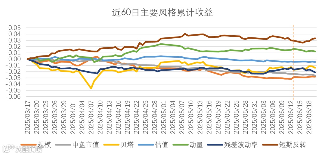 本周(2025/6/16-6/20),从近60日累计收益看,各主要风格累计收益持续窄幅震荡,市场风格切换近期较频繁,超额获取难度有一定增加。近三年主要风格收益20日波动显示,各风格波动未现极端异动,整体运行相对平稳。表明市场缺少突出的风格倾向,资金在风格间博弈节奏稳定,投资者风格偏好未大幅调整,风格层面以存量博弈下的风格频繁切换为特征。